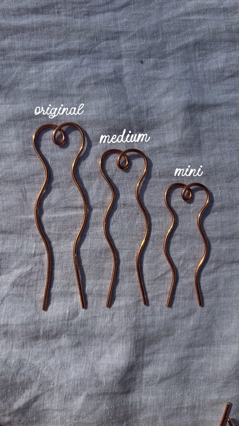 in your hands, it is both strong and tender: shaped by hand from solid copper, gentle on your hair yet made to last. a piece to gather your hair with beauty and intention, carrying strength and softness in balance